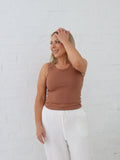 This Skye knitted top featuring charming crochet accents and an adorable, ribbed hem for a sweet finishing touch.