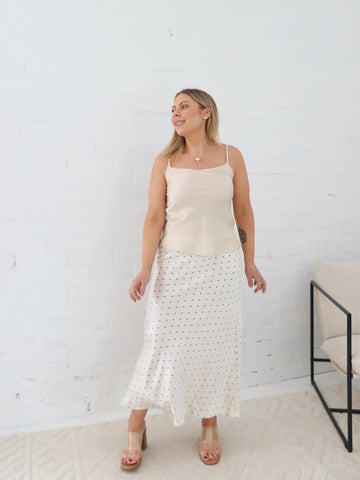 The Aya Skirt is a timeless gem. Match it with your favorite tank or laid-back tee, and you’ve got a stunning, piece you'll reach for again and again. Viscose/Polyester  Elastic...