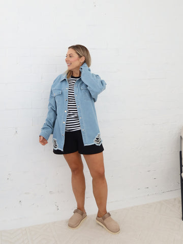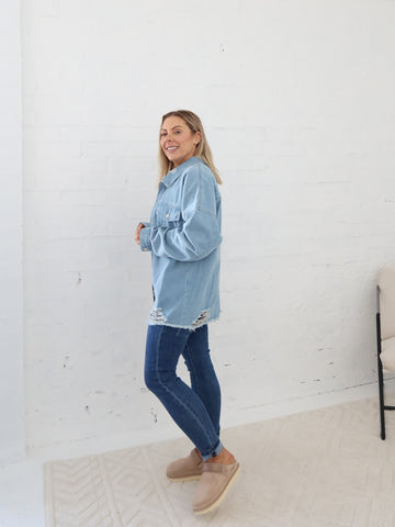 Everyone needs a Bodhi in their life, featuring a heavily distressed hem for that effortlessly cool, lived-in vibe. 90% Cotton, 10% Polyester Collar and buttons  Front pockets with press stud...