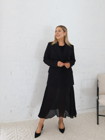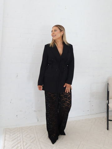 A must have wardrobe staple the classic black blazer! With its chic longline cut and a fabulous waist tie, it’s effortlessly timeless and ready to elevate any outfit. Polyester Lined ...