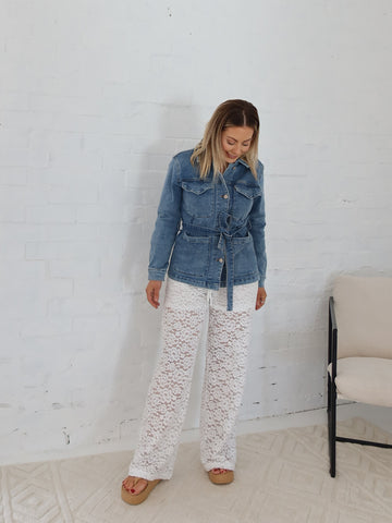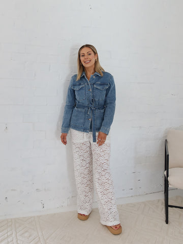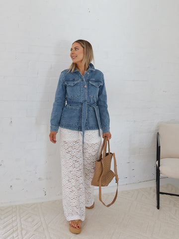 The Coen Denim Jacket is your new go-to for a fresh, edgy look—picture trench coat charm wrapped up in a shorter, more playful package thanks to its stylish tie detail....