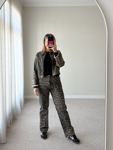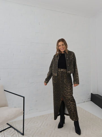The Denzel jacket is your knew statement piece! Pair it with the matching skirt or jeans and off you go.  Country Denim Brand  97% Cotton and 3% Elastane  Leopard Print  ...