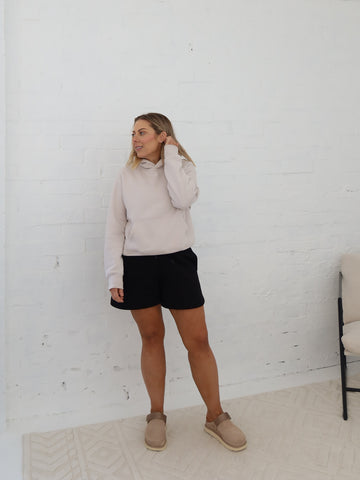 Get snug in the Frankie Hoodie! Match it with the Frankie Track Shorts for the ultimate laid-back Sunday vibe. Mid weight, 320 GSM, 80% cotton 20% recycled polyester CVC fleece...
