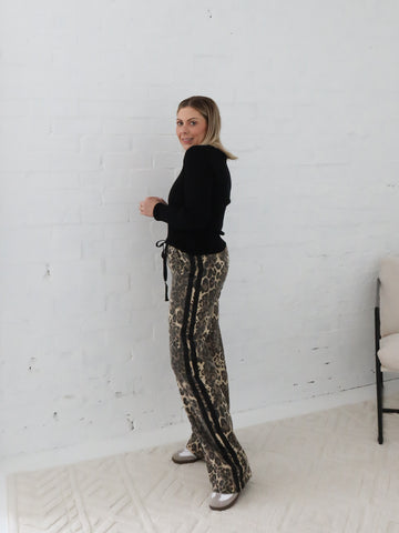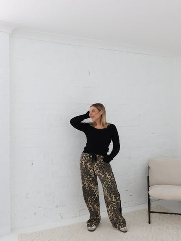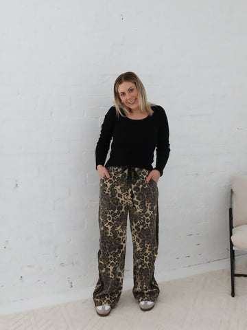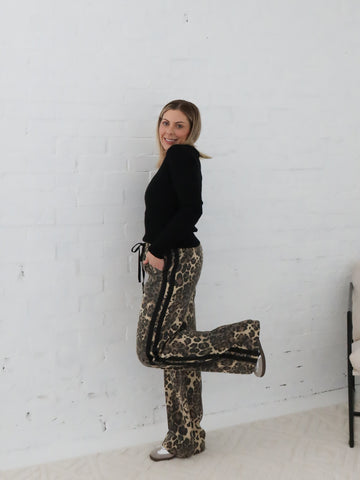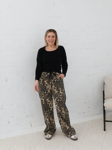 The Jagger Pants blend comfort and flair. Featuring a wide-leg cut and leopard print, they’re your ultimate pick for a cool, relaxed vibe. 100% Cotton Elastic waistband - very stretchy ...