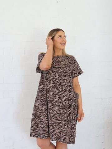 The ultimate throw and go!  100% Cotton Round neckline  Short sleeve  Shift Style Front Pockets  Available in Black, Pink Floral and Mocha/Black Please use the measurement chart to help you...