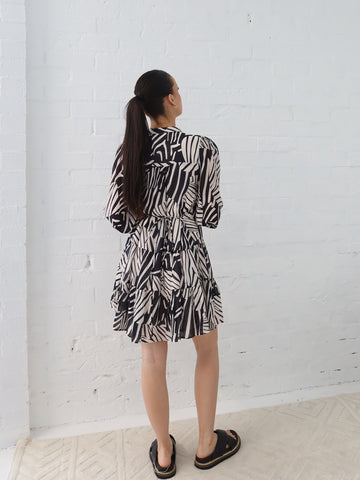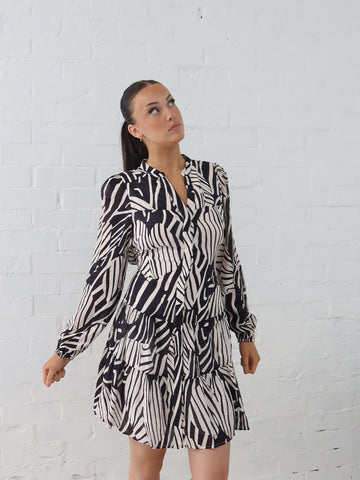 An elegant winter essential, perfect for layering with a coat and boots. 70% Viscose 30% Nylon  Lined from the bust down  Black and Off White stripe  Long sleeve with elastic...