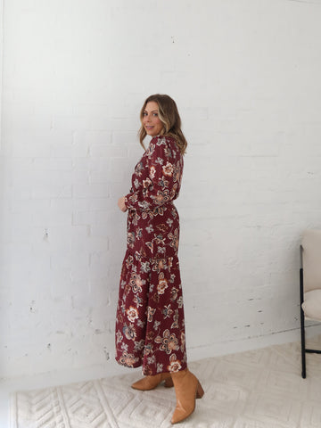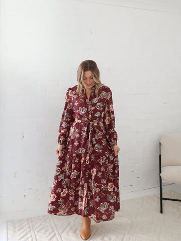 This effortlessly elegant winter dress is ideal for layering with your favorite coat and a pair of stylish boots.  80% Rayon 20% Nylon  Lined from the bust down  Burgundy with...