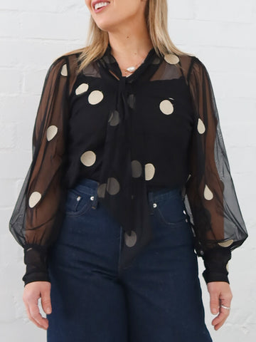 Add a fun twist to your closet with this stunning blouse, highlighted by a unique scarf accent and delicate sheer fabric that makes every look pop. Polyester  Featuring neck scarf...