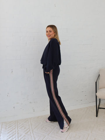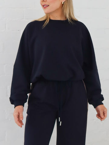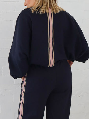 The Sullivan Sweatshirt blends comfort and fashion seamlessly. Perfect for a cool, relaxed vibe, it’s your essential piece for effortless style. Cotton/Polyester/Spandex Elastic bubble hem Feature stripe down the back...
